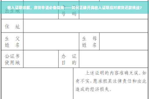 在申请房贷的过程中,银行或其他金融机构通常需要借款人提供收入证明,收入证明是评估借款人还款能力的重要依据,对于顺利申请房贷至关重要,本文将为您详细介绍如何开具收入证明,以及在开具过程中需要注意的事项。