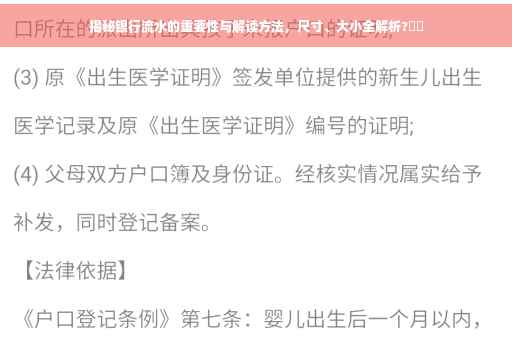 了解银行流水的尺寸对于评估个人或企业的经济状况至关重要,通过深入分析交易金额、交易频率和交易对手等多个方面,我们可以更准确地解读银行流水尺寸,从而做出更明智的财务决策。