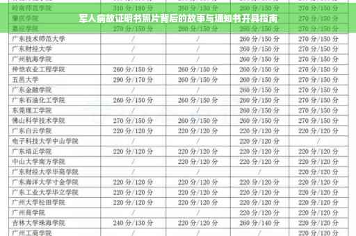 摘要:军人病故证明书照片是记录军人不幸离世的重要文件,其背后代表着军人家属的悲痛和对逝去军人的缅怀。病故军人通知书的开具也是一项重要程序,以通知相关方面并确认军人去世的事实。此文旨在介绍军人病故证明书照片的意义及如何开具病故军人通知书,以表达对逝去军人的敬意和对军人家属的慰问。
