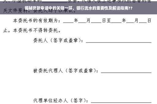 银行流水在贷款申请中扮演着举足轻重的角色,它作为评估个人或企业还款能力的重要依据,能够展示申请人的收入、支出及资金流向,银行通过审查银行流水,判断申请人的信贷风险,进而决定是否批准贷款申请。