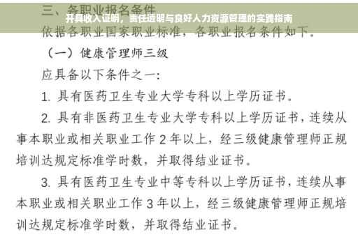 摘要:,,本文强调了为员工开具收入证明的重要性,并探讨了责任、透明与良好人力资源管理实践之间的关系。文章指出,开具收入证明应秉持负责任的态度,确保信息的准确性,同时保持透明度,让员工了解证明内容的详细情况。良好的人力资源管理实践要求我们在开具收入证明时,遵循规范流程,明确责任分工,加强内部沟通,以确保证明的可靠性和公正性。这样不仅能维护员工的权益,也有助于提升企业的信誉和凝聚力。