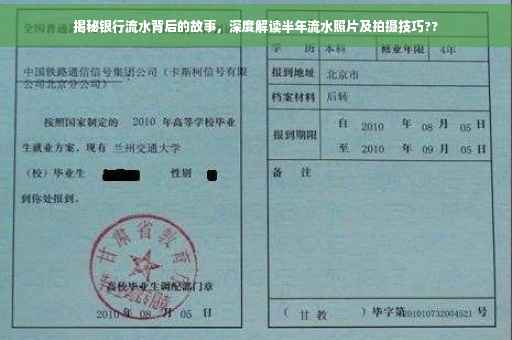 摘要:本文将揭示银行流水背后的故事,深度解读半年银行流水照片。通过简单易懂的方式,介绍如何拍摄半年银行流水照片,让读者了解银行流水的重要性和作用。本文还将提供有关解读银行流水照片的方法和技巧,帮助读者更好地理解自己的财务状况。无论您是个人还是企业,了解银行流水都是理财的重要一环。