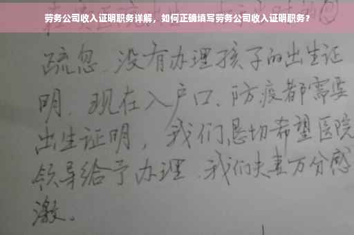 随着经济的发展和就业市场的繁荣,劳务公司成为了连接企业与劳动者的桥梁,为各类企业和个人提供了灵活多样的就业服务,本文将详细介绍劳务公司中的一项重要职务——收入证明职务,帮助大家更好地了解这一职业的特点和要求。