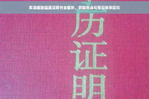 摘要:本文将详细介绍乾县解除隔离证明书的开具流程及其背后的故事。读者将了解如何获取此证明书,包括所需材料、申请流程等。本文还将探讨该证明书的重要性及其背后的防疫措施和规定。