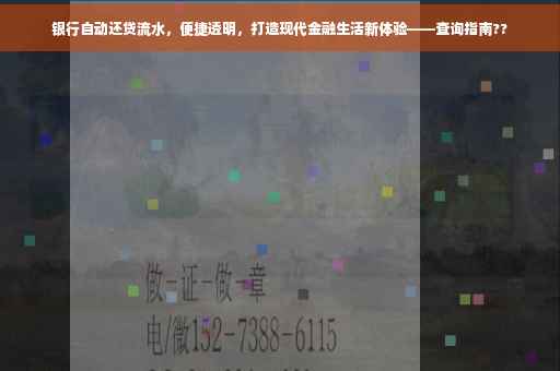 银行自动还贷流水作为现代金融生活的一种新型服务方式,为借款人带来了极大的便利,通过自动化、高效、透明的特点,银行自动还贷流水帮助借款人更好地管理个人财务,节省时间和精力,在享受这一服务的过程中,借款人应注意相关事项和信息安全问题,确保自动还款服务的顺利进行。
