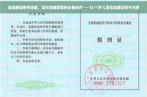 低血糖是一种不容忽视的健康问题,对患者的生活和工作产生影响,本文全面介绍了低血糖证明书的相关知识,包括其作用、申请流程、主要内容等,同时提供了应对措施和预防措施,希望通过本文,帮助大家了解低血糖及其应对措施,提高健康意识,为自身健康保驾护航。