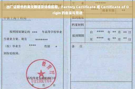 在全球化的今天,随着国际贸易的日益频繁,出厂证明书(Factory Certificate 或 Certificate of Origin)作为证明产品来源和质量的官方文件,其重要性对厂商和消费者而言不言而喻,本文将详细介绍出厂证明书的英文表达及其相关内容,帮助大家更好地理解和应用。