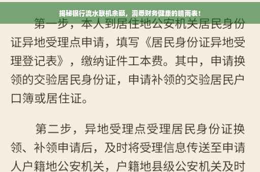 随着科技的飞速发展和数字化时代的到来,银行业务逐渐实现电子化、智能化,银行流水和联机余额作为个人财务管理的重要工具,越来越受到人们的关注,本文将详细介绍这两个概念及其在实际生活中的应用,帮助大家更好地了解自己的财务状况。
