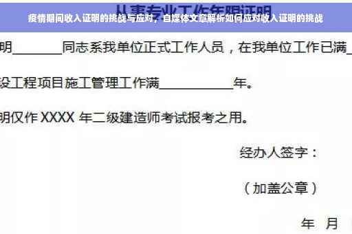 随着新冠疫情的蔓延,各行各业及无数个人都经历了前所未有的挑战,尤其是收入问题,本文将深入探讨疫情期间收入证明的重要性、所面临的挑战及应对策略,以期帮助大家共同度过这段艰难时期。