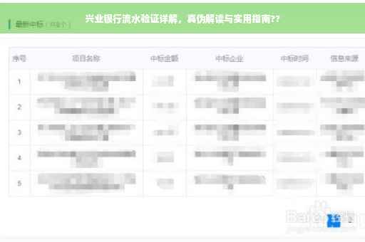 摘要:本文将为您全面解读兴业银行流水验证的过程,提供实用的验证指南。内容包括如何识别流水账单真伪,以及验证流程中的注意事项。通过阅读本文,您将了解如何轻松完成兴业银行流水验证,确保账单的真实性和准确性。