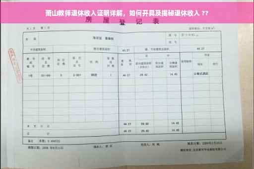 摘要:本文将介绍萧山教师退休收入证明的重要性及其开具流程。通过了解退休收入证明的作用,包括申请社会福利、办理金融业务等,本文将指导读者如何准备相关材料并遵循正确步骤开具收入证明。还将探讨萧山教师退休收入的实际情况,帮助读者更好地了解教师的退休待遇。本文旨在为读者提供实用信息和指导,以便顺利办理退休收入证明。