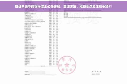 摘要:签证申请中的银行流水公帐是证明个人财务状况的重要材料。了解银行流水公帐的查询方式,需提前准备相关证明材料并了解注意事项。本文将介绍如何查询签证银行流水公帐,包括所需材料、查询流程等,以帮助申请人顺利准备签证申请中的财务证明材料。
