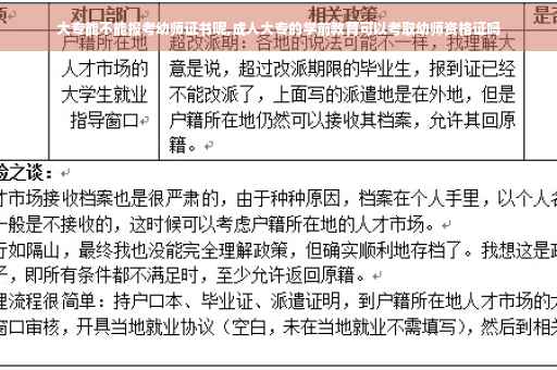2. 成人大专的学前教育可以考取幼师资格证,因为幼师资格证的考取是根据个人的学历和培训经历来确定的,而成人大专的学前教育是符合幼师资格证考取的学历要求的。
