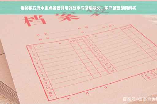 摘要:银行流水重点监管账户揭示了金融领域的深层监管故事。随着金融市场的不断发展,银行流水监管成为防范金融风险的重要手段。通过对银行流水账户的严格监管,能够及时发现并控制潜在风险,保障金融市场的稳定和客户的资金安全。这也反映了监管部门对金融行业的重视和规范化管理的决心。