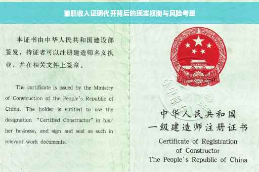 随着互联网的普及和经济发展,越来越多的人选择兼职来增加收入或充实自己的职业经历,在这个过程中,兼职收入证明成为了许多人在求职、申请贷款等方面所需的重要文件,由于种种原因,一些人可能无法亲自前往单位开具收入证明,这时便需要考虑代开收入证明的问题,本文将围绕兼职收入证明代开的现实情况、操作方式、风险及应对建议展开讨论。