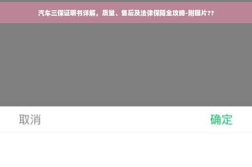 摘要:汽车三保证明书是一份重要文件,确保购车者的权益得到全面保障。该证明书详细解读了车辆质量、售后服务和法律保障三个方面,为购车者提供安心的购车体验。附带汽车三保证明书图片,一目了然了解保障内容。购车者可以放心购买,享受全方位的保障服务。