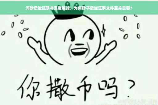 摘要:河砂质量证明书对于确保建筑和工程项目的安全至关重要。这份证明文件详细记录了河砂的质量状况,包括其成分、纯度、颗粒大小等重要参数。深度解读河砂质量证明文件有助于了解河砂的来源、生产过程以及质量控制措施,从而确保建筑材料的可靠性和安全性。通过这份证明文件,相关企业和个人可以明确河砂的质量标准,避免因使用低质量材料而导致工程事故。河砂质量证明书的重要性不容忽视。