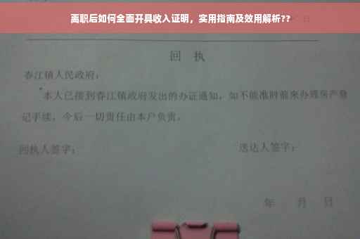 在职场中,离职是一个常见的情况,离职后,有时我们需要提供收入证明以应对生活中的一些需求,例如贷款申请、房屋租赁等,收入证明是一份证明个人经济实力的文件,对于刚刚离职的朋友来说,如何开具收入证明可能会成为一个难题,本文将为大家提供一份全面的指南,帮助大家了解离职后如何开具收入证明,以便更好地应对生活中的各种挑战。