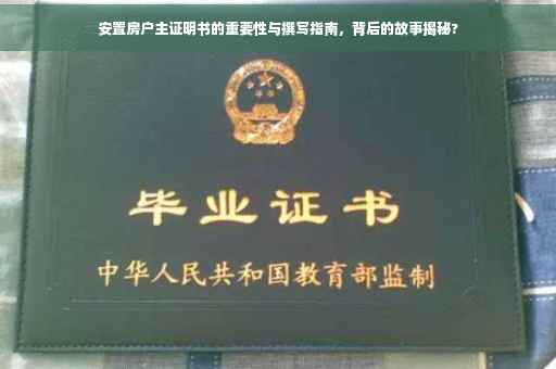 一份安置房户主证明书,虽然看似简单,却承载着无数人的梦想与希望,这份证明书的背后,蕴含着深刻的政府政策、民生需求和社会变迁,让我们一起深入探讨安置房户主证明书的重要性,并了解它背后的故事。