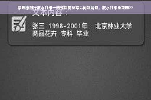 摘要:本篇一站式指南详细介绍了桑坦德银行流水打印的步骤和注意事项,同时解答了常见的问题。内容包括如何打印银行流水,所需材料,注意事项等。旨在帮助用户方便快捷地获取银行流水,避免因操作不当导致的问题。