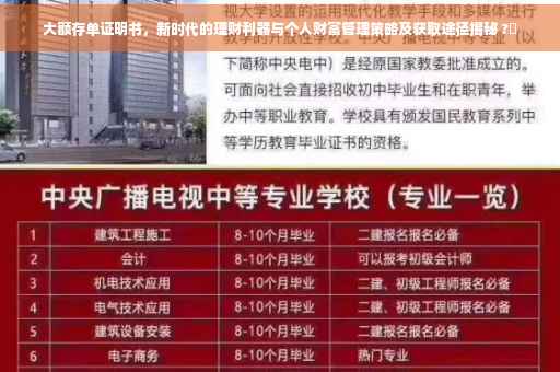 随着金融市场的不断发展和创新,大额存单证明书作为一种新型的理财工具逐渐受到广大投资者的青睐,本文将详细介绍大额存单证明书的基本概念、特点,以及其在个人财富管理中的实际应用策略,帮助读者更好地理解和运用这一理财利器。