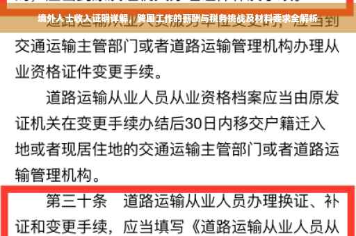 摘要:境外人士收入证明详解,涉及跨国工作的薪酬与税务挑战。境外人士收入证明材料需满足一系列要求,包括证明文件的真实性、有效性及符合当地法律法规。境外收入证明主要包括工作合同、税务证明、银行流水等。在跨国工作时,需了解不同国家的税务政策,遵守当地法律法规,确保收入合法且税务合规。境外人士需妥善保管相关证明材料,以备不时之需。