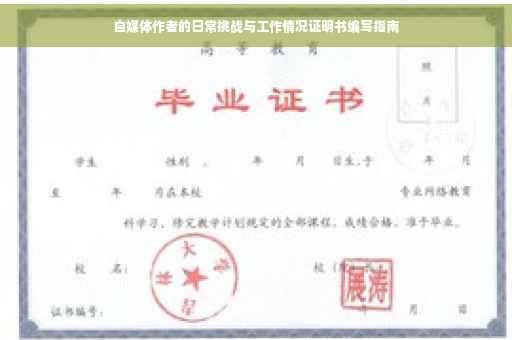 摘要:本文将介绍自媒体作者的日常工作内容及其所面临的挑战,并着重介绍如何撰写工作情况证明书。这些自媒体作者需要不断创作高质量的内容,同时面对市场竞争和读者需求的压力。本文将指导读者如何详细记录工作成果,包括文章数量、影响力、反馈等,并强调真实性和客观性在撰写工作情况证明书中的重要性。通过本文的指导,自媒体作者可以更好地展示自己的工作成果,提高个人竞争力。