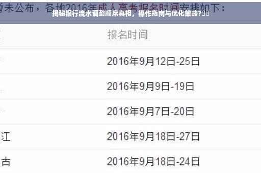 银行流水作为个人经济生活中的重要证明文件,在贷款、信用卡申请及某些重要业务办理过程中扮演着至关重要的角色,有时,银行流水的顺序可能会出现混乱,这不仅可能影响工作效率,还可能引发误解,本文将详细解析银行流水调整顺序的背景、必要性,并为大家提供实用的方法和策略。