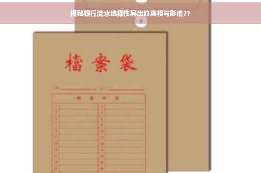 摘要:银行流水存在选择性导出的情况,这一现象背后隐藏着真相和广泛影响。本文揭示了银行流水选择性的背后原因,包括隐私保护、数据安全和客户特定需求等因素。本文也探讨了银行流水选择性对消费者、企业和整个金融体系可能产生的影响。了解这些真相和影响,有助于我们更好地认识银行流水的重要性,并做出明智的金融决策。