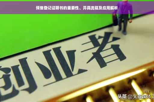 在房地产交易中,预售登记证明书的应用十分广泛,购房者在购买新房时,需要向开发商提供个人信息并签订预售登记证明书,以确保自己的购房权益,开发商在销售房屋时,也需要向购房者提供预售登记证明书,以证明项目的合法性和销售行为的规范性,房地产管理部门也会依据预售登记证明书对房屋交易进行监管。