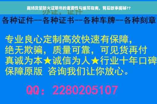 随着商业的繁荣发展,商场作为人们购物的主要场所,其安全问题日益受到关注,商场货架防火问题更是重中之重,本文将深入探讨商场货架防火证明书的重要性,同时分享一些相关背景故事,以期提高大家对商场安全的认识。