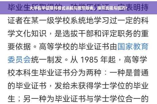 随着社会的不断进步与发展,越来越多的人选择继续深造,进入大学学习,在这个过程中,大学在学证明书作为证明学生在校学习情况的官方文件,其重要性日益凸显,本文将详细介绍大学在学证明书的格式及撰写要点,以帮助广大师生高效、准确地完成证明书的制作。