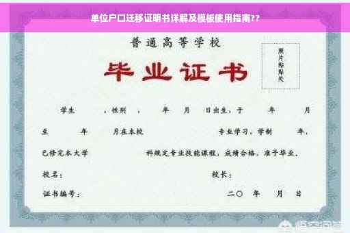 摘要:,,本文详细介绍了单位户口迁移证明书,包括其重要性、使用场景和模板。文章指出,单位户口迁移证明书是用于证明员工户口迁移的官方文件,通常用于员工在单位内部或跨地区调动时。文章还提供了一个单位户口迁移证明书模板,以帮助读者更好地理解和使用该证明。通过本文,读者可以了解如何正确填写和使用单位户口迁移证明书。
