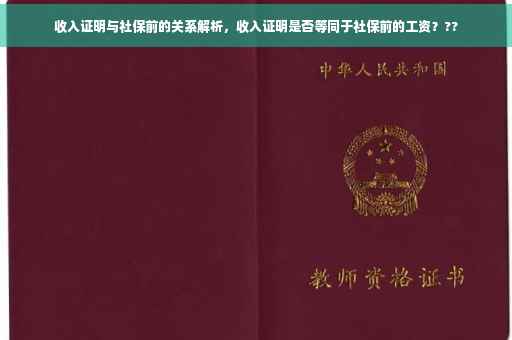摘要:本文将解析收入证明与社保前的关系,探讨收入证明是否等同于社保前的工资。文章将简要介绍收入证明的概念和作用,以及社保缴纳与收入证明的关系。通过解析相关概念,帮助读者了解两者之间的联系和差异。
