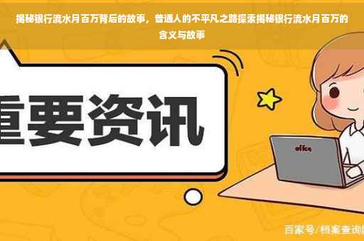 摘要:,,银行流水月百万是指个人或企业在银行账户中每月的流水金额达到百万级别。背后隐藏着普通人的奋斗和不平凡之路的故事。通过努力工作和理财规划,一些人实现了月流水百万的成就。本文将揭示这些故事,让读者了解银行流水月百万背后的意义,以及普通人如何通过不懈努力走向成功之路。