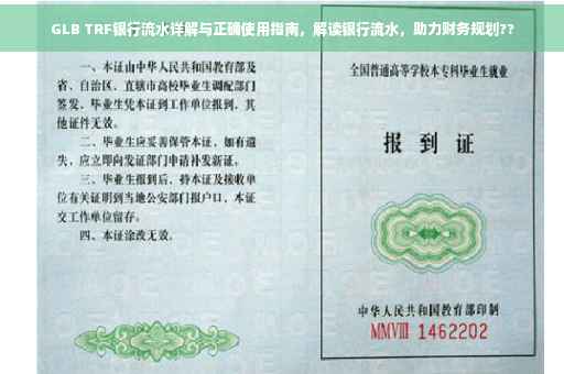 随着金融行业的快速发展,越来越多的人开始关注个人财务管理的重要性,银行流水作为个人财务记录的重要组成部分,对于申请贷款、信用卡等金融产品具有关键作用,GLB TRF银行作为一家知名的金融机构,其提供的银行流水服务备受关注,本文将详细介绍GLB TRF银行流水的相关内容,帮助大家正确解读和使用银行流水。