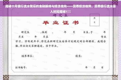 摘要:本文通过揭秘十月银行流水,深入剖析金融脉络和经济走向。通过详细分析银行流水数据,揭示经济趋势和资金流向,帮助读者更好地了解当前经济形势。本文还介绍了银行流水录入的时间节点,为读者提供有价值的金融信息。