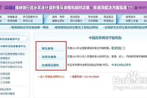 摘要:银行流水无法计算是一个涉及金融领域的重要问题,背后隐藏着真相与广泛影响。面对这一问题,客户需了解银行流水计算的具体要求和标准,同时寻求专业指导和解决方案。本文将揭示银行流水不能计算的真相,探讨其影响,并提供应对建议,帮助读者更好地理解和解决这一问题。