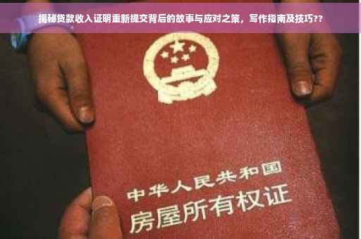 摘要:贷款重新提交收入证明是贷款流程中的必要环节,但有时背后隐藏着故事。在撰写收入证明时,需真实反映个人收入情况,避免夸大或虚假陈述。若遇到质疑或要求重新提交,应冷静应对,查明原因并解决问题。了解银行或其他贷款机构的要求和流程,确保提交的材料符合要求。应对之策包括提前准备、充分沟通、提供额外证明等。正确应对,有助于顺利获得贷款。