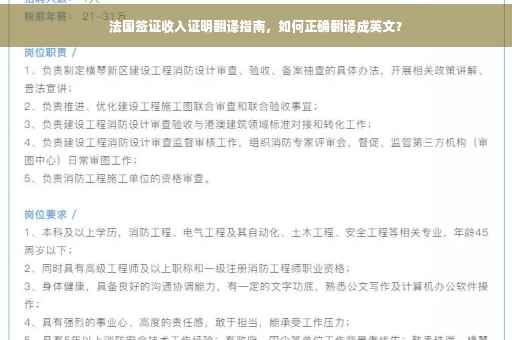 法国签证收入证明翻译是申请法国签证过程中的重要环节,本文旨在帮助申请人顺利获得法国签证,在申请过程中,申请人应严格按照要求准备材料,确保翻译的准确性和完整性,以确保签证申请的顺利进行。