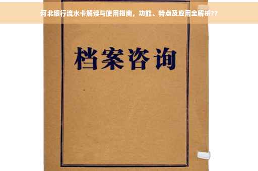 随着金融行业的快速发展,银行流水账单已成为人们日常生活中不可或缺的一部分,河北银行作为一家具有深厚历史底蕴的金融机构,为广大客户提供了一种便捷的方式——流水卡,来管理和查询自己的银行账户交易记录,本文将详细介绍河北银行流水卡的功能、特点以及使用方法,帮助读者更好地理解和使用这一金融工具。