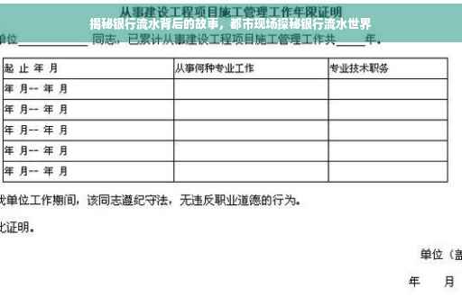 摘要:在繁忙的都市现场,银行流水背后隐藏着许多故事。本文将揭示银行流水的重要性及其背后的细节,从银行业务的角度探讨流水的意义。通过深入了解银行流水,我们将揭示其背后的真相,并带您走进这个看似平常却充满奥秘的世界。