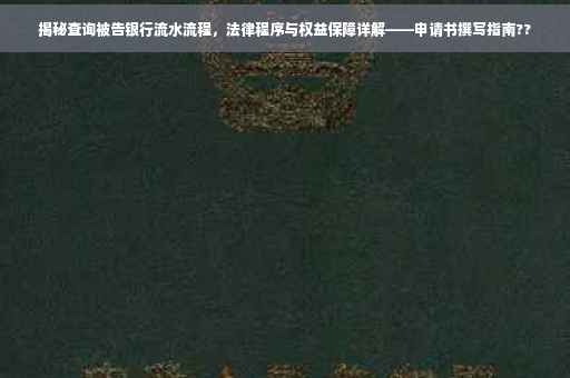 本文详细介绍了查询被告银行流水的法律流程、注意事项和个人权益保障,通过案例分析等形式,帮助读者更好地理解相关法律规定,提醒公众遵守法律程序,维护自身合法权益,在涉及法律纠纷时,应及时寻求法律援助,获取更详细的法律建议和指导。
