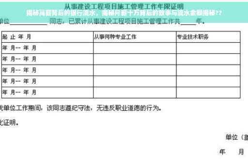 在银行体系中,流水是记录个人或企业资金流动的重要文件,对于追求高薪的我们来说,银行流水不仅是个人信用和贷款申请的体现,更是衡量我们收入状况的关键指标,当我们谈论月薪十万时,一份清晰、规范的银行流水无疑是对我们收入的有力证明。