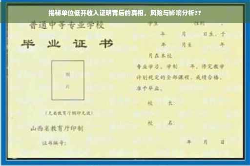 摘要:近期发现许多单位存在低开收入证明的现象,背后隐藏着诸多不为人知的真相。这种行为不仅损害员工权益,还可能导致一系列风险。本文将深入探讨单位低开收入证明背后的真相,揭示其潜在风险,提醒广大市民提高警惕,维护自身合法权益。