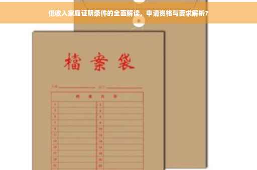 摘要:,,本文将全面解读低收入家庭的证明条件。低收入家庭证明是指针对家庭经济状况低于一定标准的家庭所出具的一种证明。申请低收入家庭证明需要满足一定的条件,包括家庭经济状况、收入状况、家庭成员人数等方面。本文将详细介绍这些条件,帮助读者了解如何申请低收入家庭证明,并探讨相关的政策支持和保障措施。