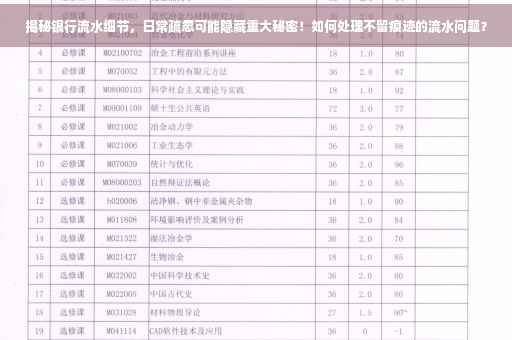 摘要:银行流水是记录个人或企业资金流动的重要证据,如果不慎遗失或未妥善保留,可能会带来不必要的麻烦。对于银行流水没有保留的情况,需要引起足够的重视。可以通过及时联系银行查询和打印流水记录,同时加强财务管理意识,定期备份和妥善保存相关凭证。还需注意在日常细节中可能隐藏的秘密,确保个人财产安全。