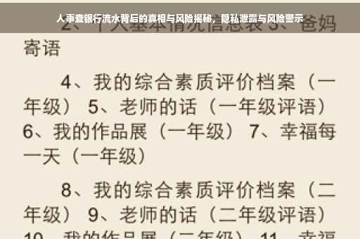 近年来,随着企业招聘竞争的加剧,人事查银行流水逐渐成为背景调查中的一项重要内容,某大型企业在招聘高管时,通过查询候选人的银行流水,发现其收入状况与简历中所述存在巨大差异,最终成功避免了招聘风险,这一事件引起了广泛关注,让人们开始关注人事查银行流水背后的真相与风险。