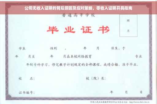 摘要:公司当年无收入证明的情况可能与多种因素有关,如市场环境变化、经营策略失误等。面对这种情况,公司应深入分析原因并采取相应策略。无法开具收入证明时,建议公司提供其他证明材料,如财务报表、税务证明等,以证明公司实际经营状况。公司还需积极调整经营策略,拓展市场,提升自身竞争力,以改善无收入状况。