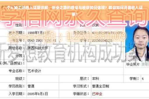 个人加工坊的创业之路虽充满挑战,但只要我们坚定信念、勇往直前,就一定能够实现自己的创业梦想,而收入证明作为评价其经营状况的重要依据,更是我们未来发展的坚实保障,让我们重视收入证明的开具和管理,为其未来发展打下坚实的基础。